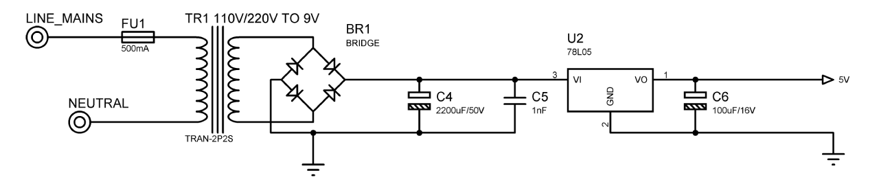 this is the schematics for the 5V 100mA linear power supply i made for this: